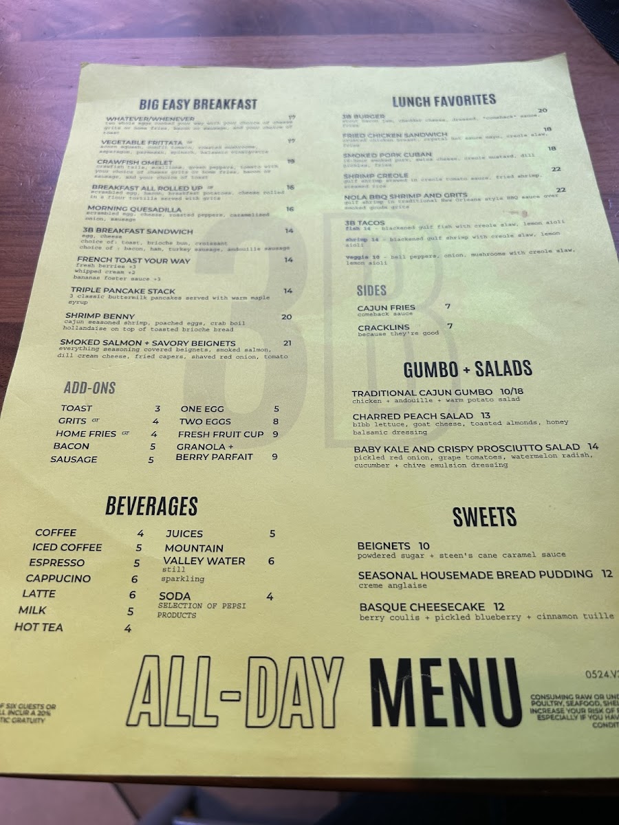 The standout feature is their Big Easy Breakfast, where you can indulge in dishes like the Crawfish Omelet or a customizable breakfast platter that includes two eggs cooked to your liking, paired with cheese grits or home fries. Don’t miss their unforgettable beignets, hailed as a superior choice compared to tourist traps.